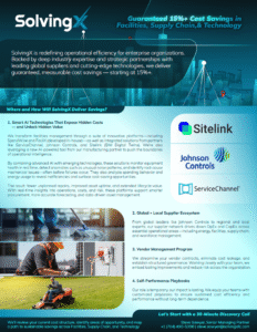 Trusted by industry leaders, SolvingX drives measurable results—our clients report 20% cost savings and 40% faster project delivery. Whether you’re a facility manager, CFO, or operations director, our platform empowers you to achieve operational excellence and stay ahead in a competitive world.